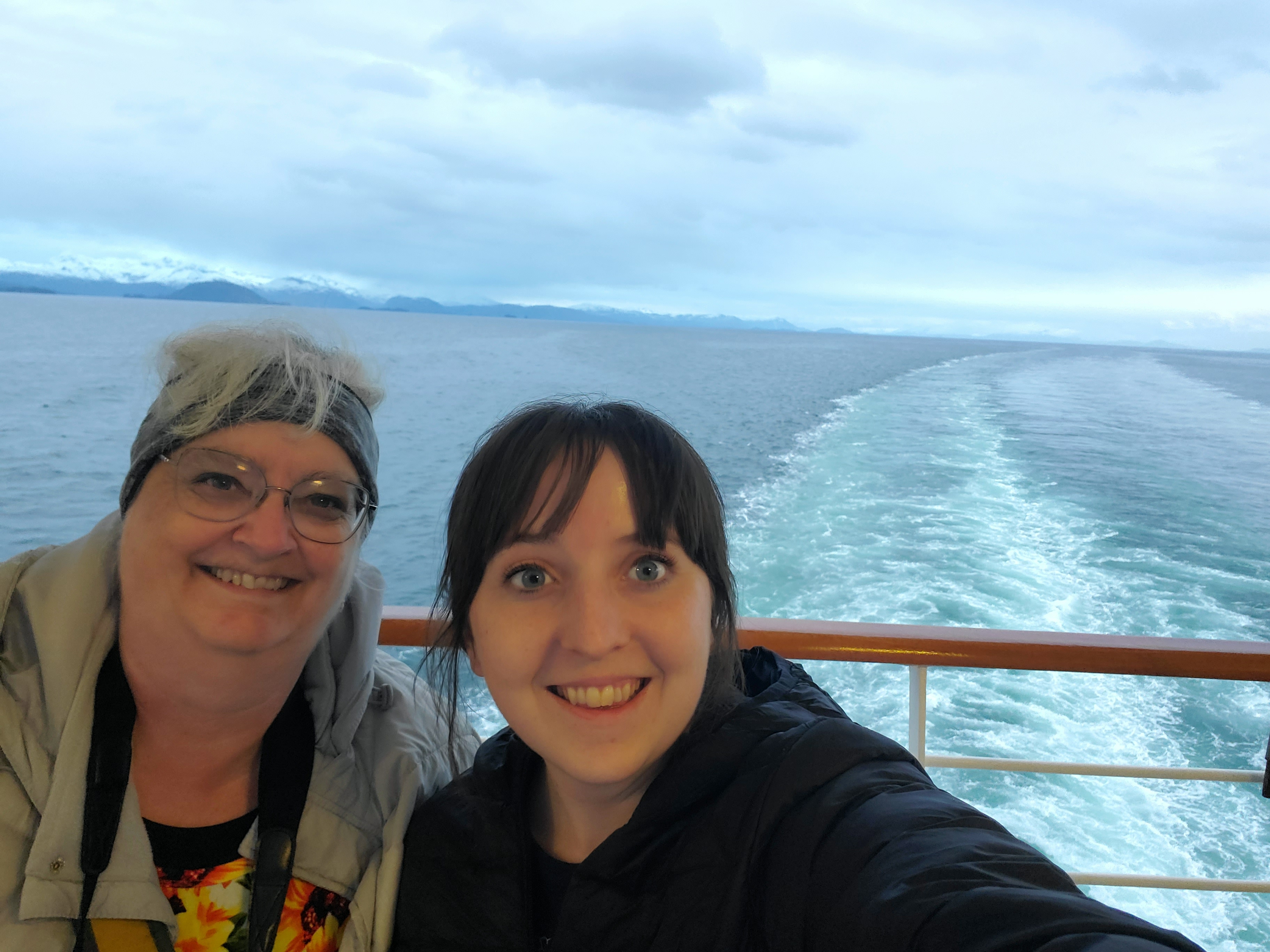 We explored the ship some more and walked around outside a bit. It was so peaceful being outside in scenery. I think we grabbed a bit for dinner (none of us were very hungry), and then we went back to our rooms later in the evening, probably around 8 or 9, and got unpacked, and then Aunt Pamela and I walked around on the promenade a bit more. It was strange how light it was even at 10PM–I think we were out there until 11 or so, but it wasn’t dark at all.